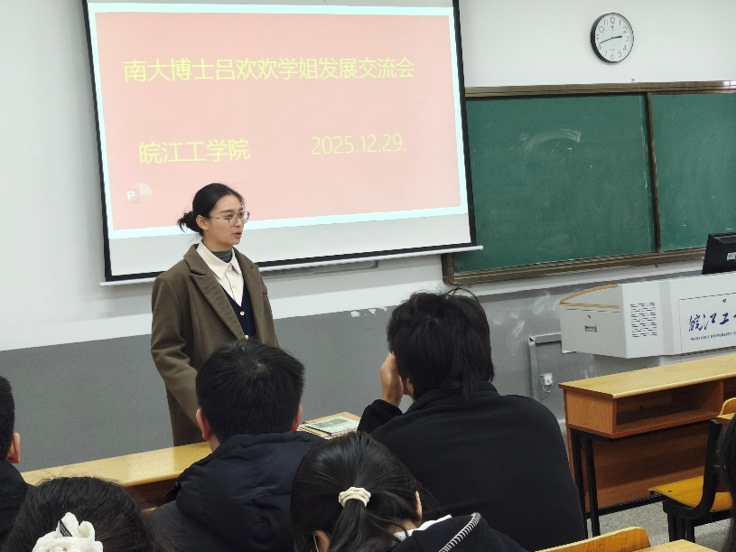 2025年12月29日,我校2018届自动化专业优秀毕业生吕欢欢重返母校,为自动化、通信、电气、地质专业大三学子带来升学与就业经验分享。作为上海电力大学人工智能学部硕士、南京大学计算机学院在读博士,吕欢欢发表9篇一作SCI论文、3项授权发明专利成果,曾获安徽省优秀毕业生、上海市优秀毕业生等荣誉,以自身经历为蓝本,为学弟学妹答疑解惑,传递以目标领航、以成长赋能的人生感悟。