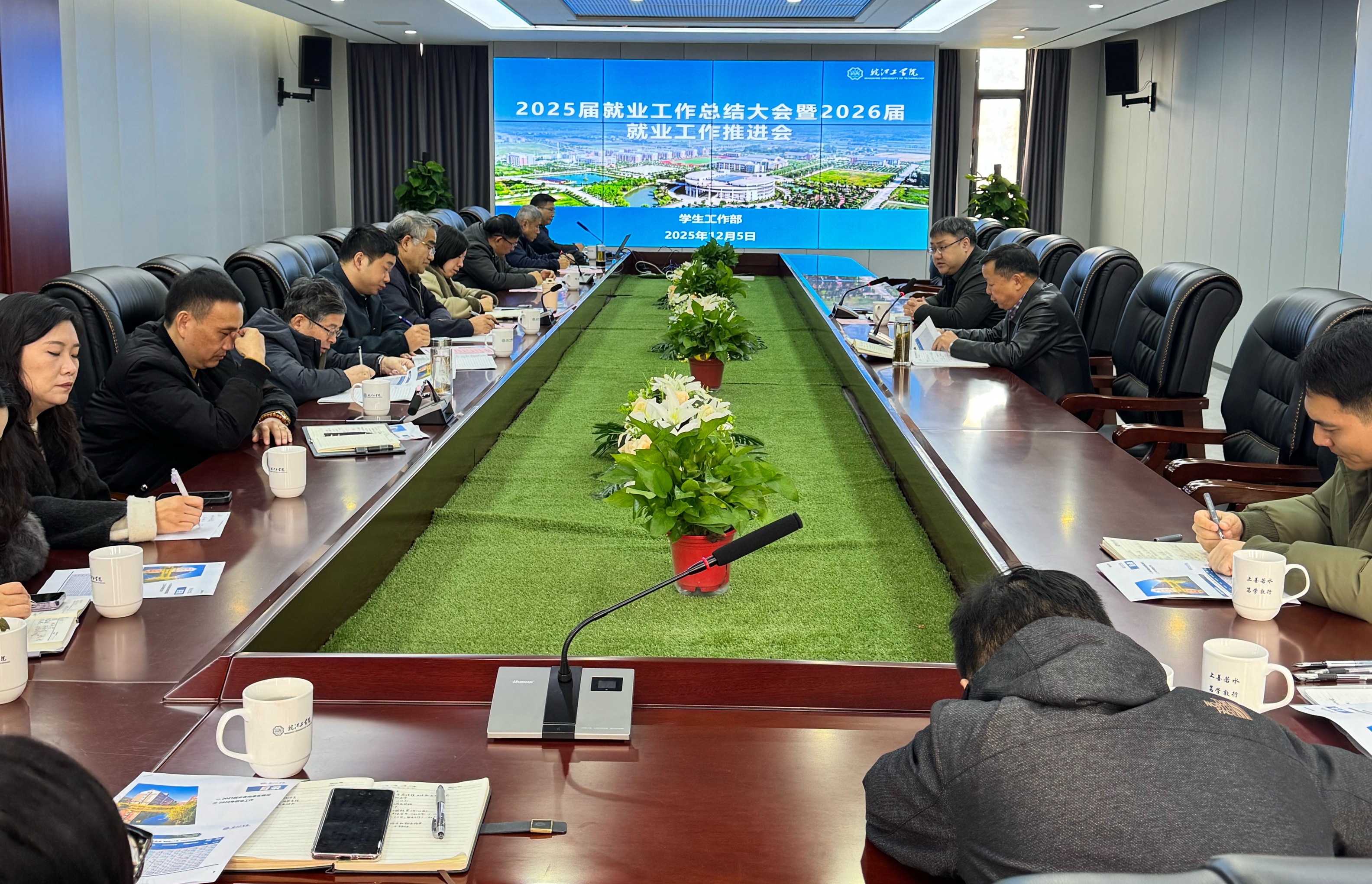 凝心聚力促就业,谋篇布局启新程。为深入学习贯彻党的二十届四中全会精神及 2026 届全国普通高校毕业生就业创业工作会议部署,全面复盘 2025 届就业工作成效、梳理经验做法,精准锚定 2026 届毕业生就业工作重点任务,2025 年 12 月 5 日(星期五)上午 9 时在行政楼 417 会议室召开 2025 届就业工作总结暨 2026 届就业工作推进会。副校长侯进元,副校长王志、学生工作部副部长汪朱华,各二级学院党总支书记、副书记,就业指导中心相关工作人员参加会议,侯进元主持会议。​