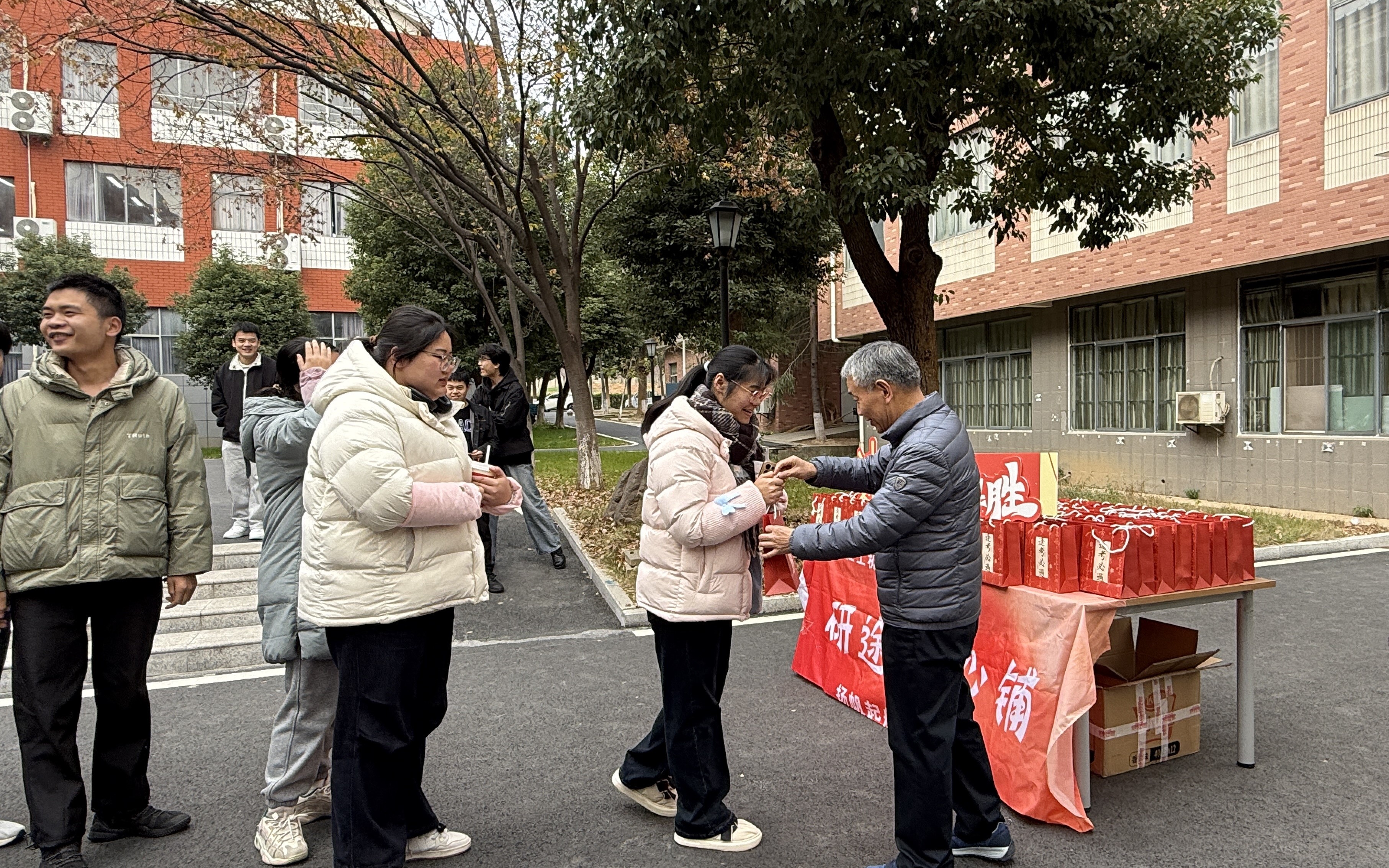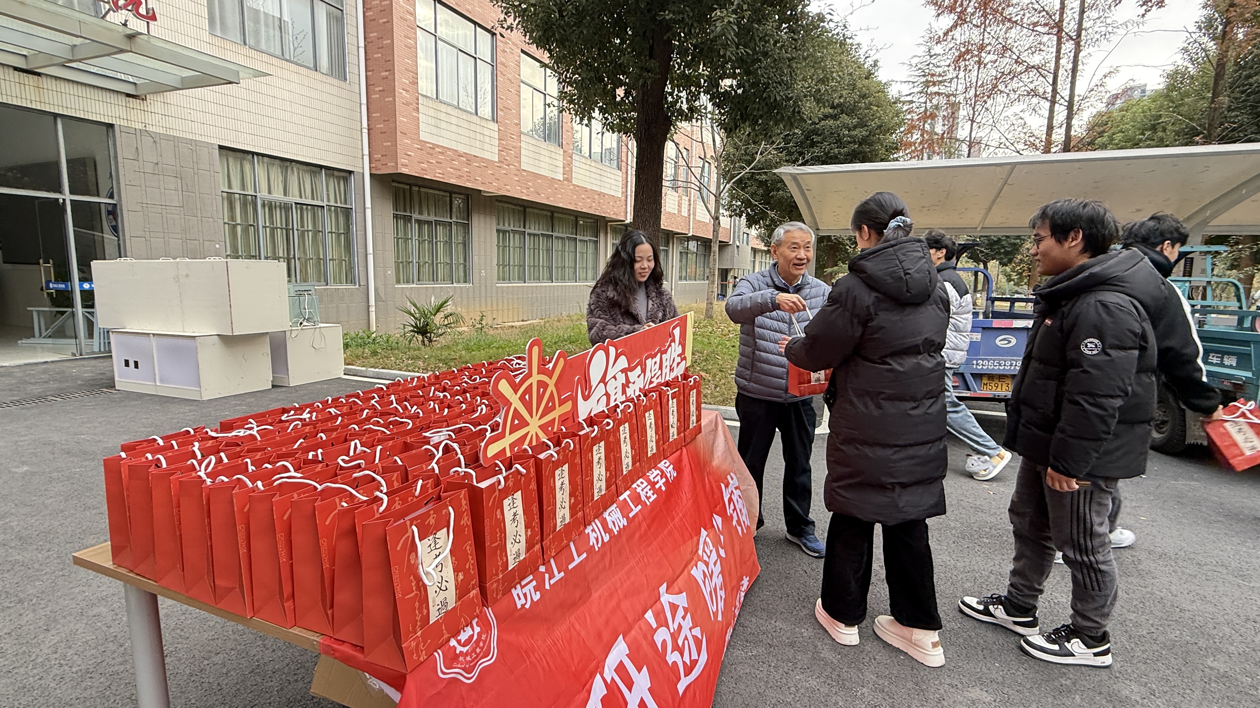 寒冬岁末,考研在即。为缓解学子备考压力、传递学院关怀,2025年12月4日,皖江工学院机械工程学院于敦行楼楼下开展考研慰问活动。学院院长朱天宇、院党总支副书记颜婷婷、院分团委汪娟老师来到活动现场,为冲刺阶段的考研学子送上慰问礼品与暖心祝福。