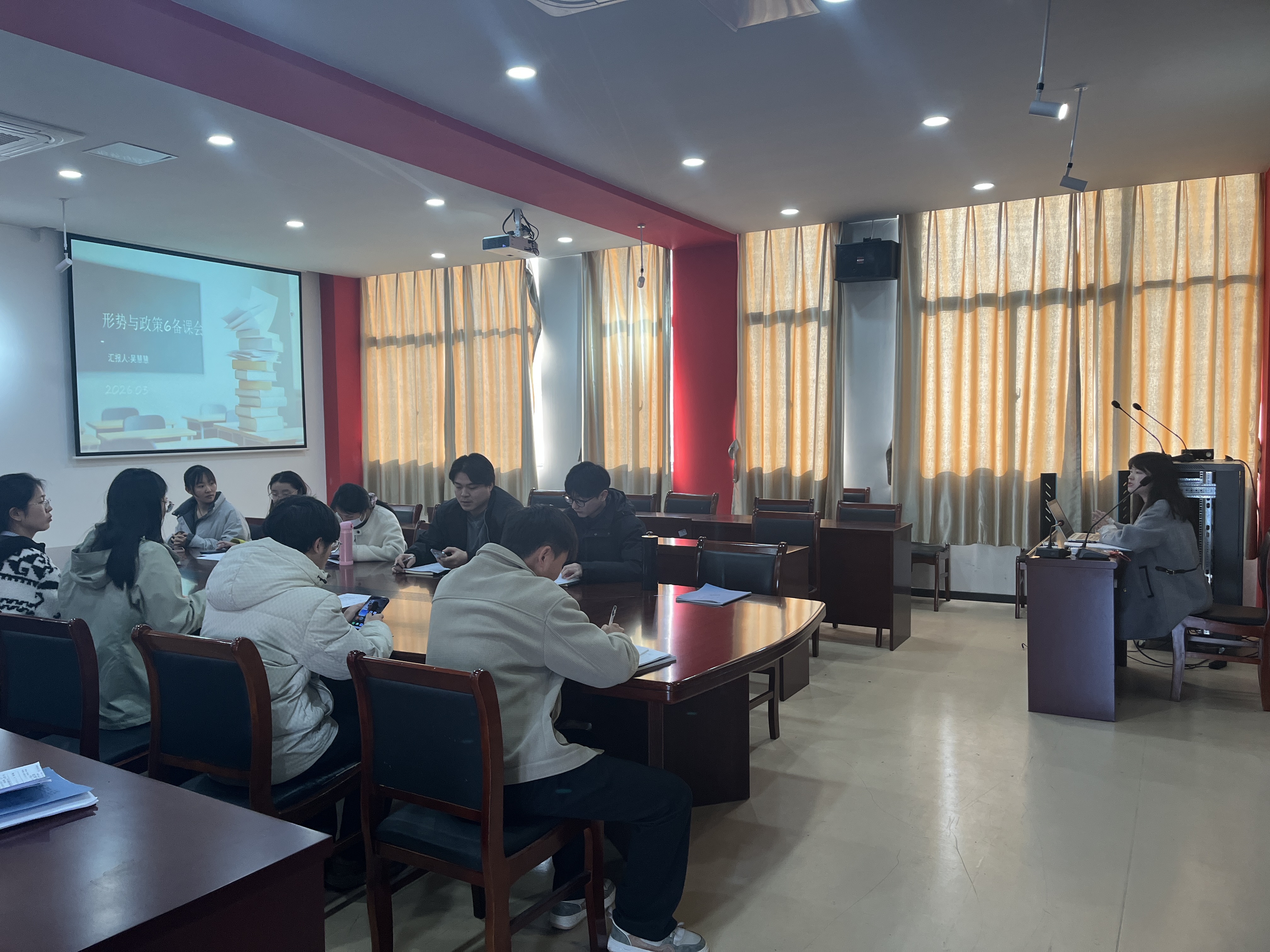 《形势与政策6》备课会主要聚焦课程教学规范,明确三大核心要求——严守课堂政治纪律,精准把握教学重难点;紧跟时政热点,及时更新教学素材;规范教案、课件等教学材料归档,保障教学工作标准化推进。