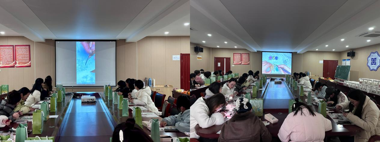 活动间隙,精致的茶点为现场增添了几分温馨。大家在轻松愉快的氛围中畅谈工作与生活,分享心得与感悟,进一步拉近了彼此的距离,增强了团队的凝聚力。最后,女教职工们在门口展板处合影留念,定格下这美好而难忘的瞬间。
