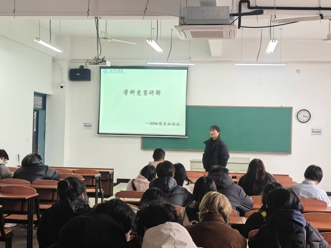 随后,常竹围绕新学期学习任务开展动员与针对性指导,引导同学们迅速摆脱假期松弛状态,切换至专注学习模式。他要求同学们课堂上认真听讲、主动思考、积极互动,课后及时巩固复习,扎实掌握专业知识。结合地理空间信息工程专业实践性强、注重创新的特点,常竹重点介绍了新学期多项专业相关学科竞赛,详细讲解了各类竞赛的背景意义、时间节点、参赛形式及内容要求,鼓励同学们结合自身兴趣与特长,主动组队参与,以赛促学、以学促练、以练促干,在备赛过程中深化专业理解、提升实践创新能力、拓展专业视野,实现学业与综合素养的双重提升。