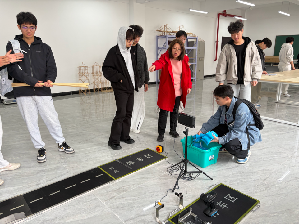 分享环节结束后,参赛同学有序领取竞赛专用材料,相关负责人现场展示竞赛加载测试装置,细致讲解装置使用原理、操作规范及测试流程,让同学们提前熟悉竞赛考核环节。